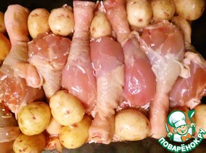 Укладываем голень и картофель