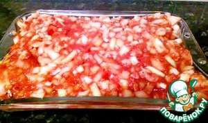 Ну и последним слоем снова сок с луком. Оставляем при комнатной температуре на 3-4 часа. За это время, голень впитает в себя все вкусы.