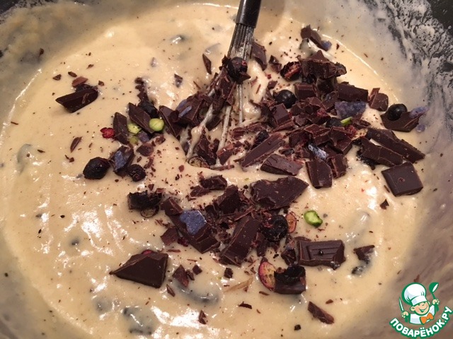 Смешайте сухие ингредиенты с сывороткой и яйцами, добавьте растопленное масло. Добавьте печенье, мак и шоколад. Тесто получится, как на оладьи.