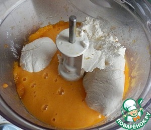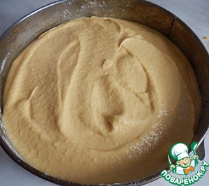 выкладываем творожно- тыквенное тесто и ставим в разогретую духовку до 180 градусов.