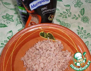 Предварительно отвариваем красный рис. Он варится быстро и хорошо разваривается.
