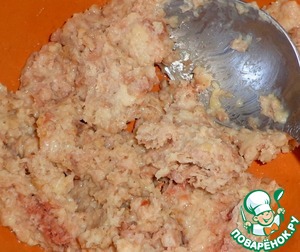 Кладем куриный фарш в тарелку. Можно взять смешанный фарш.