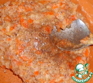 Насыпать мускатный орех и соль по вкусу. Перемешать.