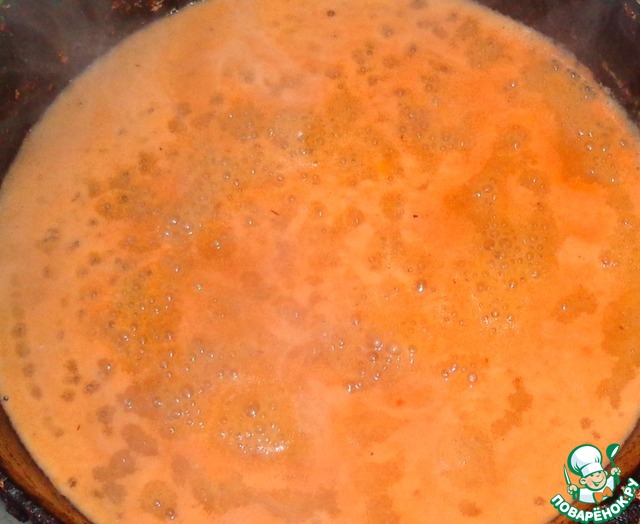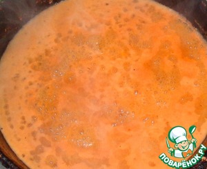 В сковороде подогреть воду, добавить томатную пасту, сметану, имбирь и соль. Довести до кипения.
