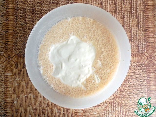 Затем добавить к ряженке сметану.