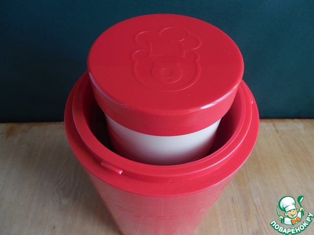 Далее нужно оставить ряженку для сквашивания на 6-8 часов. Сделать это можно при помощи электрической йогуртницы, металлического термоса или, как в моем случае, йогуртницы - термоса "Oursson". В йогуртницу - термос нужно залить кипяток и погрузить в него контейнер с молоком. Затем плотно закрутить крышку термоса и оставить на 8 часов. Готовую ряженку нужно охладить в холодильнике хотя бы 4 часа.
