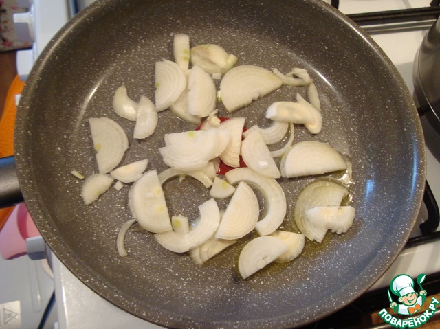 Жарим лук до готовности в сковороде, в подсолнечном масле.