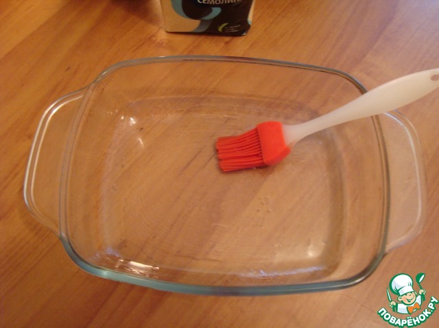Делаем тесто. В кефире гасим соду, добавляем сахар, соль, яйца. Всё соединяем и выкладываем манку, даём постоять минут 5, чтобы она разбухла. Очень нравится мне манная крупа Семолина ТМ МИСТРАЛЬ в выпечке.