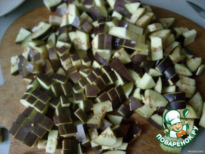 Баклажаны нарезать и добавить к луку, обжарить.