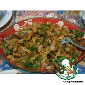Салат горячий, потому что все тушится, но не просто в воде, а в вине и томатном соке! Ароматный, овощной салатик со вкусом грибочков и пикатным соусом!