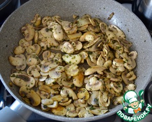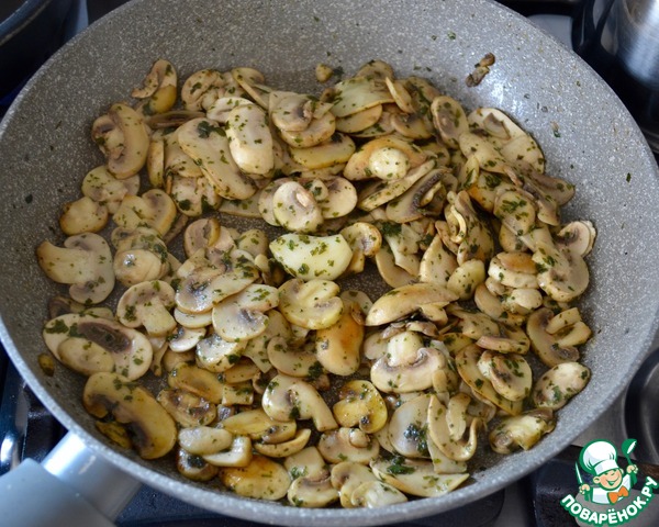 • Добавить в сковороду грибы. Обжарить до готовности. Посолить и поперчить по вкусу. Готовые грибы отставить в сторону.