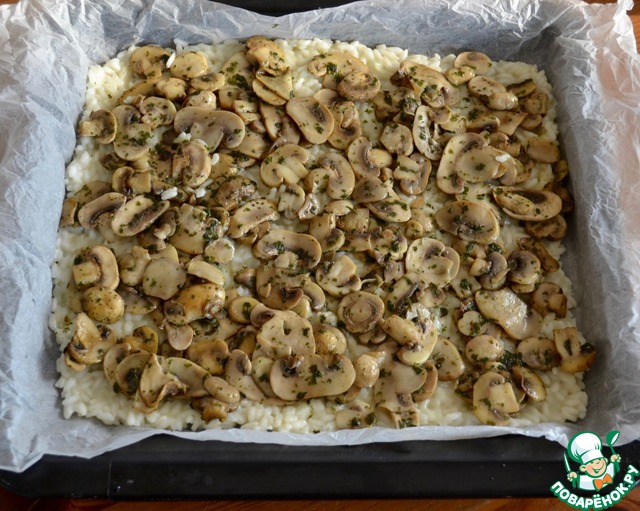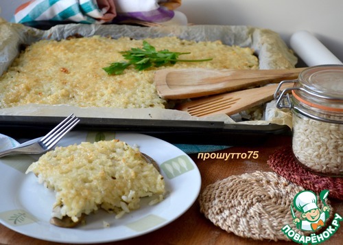 Это очень простое в приготовлении и по составу блюдо на самом деле оказалось очень вкусным и аппетитным - с зажаристой корочкой сыра сверху, с ароматной начинкой из грибов! А еще можно поэкспериментировать с начинками в этой "лепешке"-запеканке и сделать слой из овощей, с цуккини, например... "Почему лепешка?", спросите вы. Просто в оригинальном итальянском названии рецепта блюда звучит как "расплющенный торт из риса"! В общем, приступим...