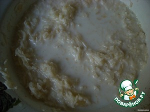 Сыр трем на терке и смешиваем с молоком до кашеобразного состояния.