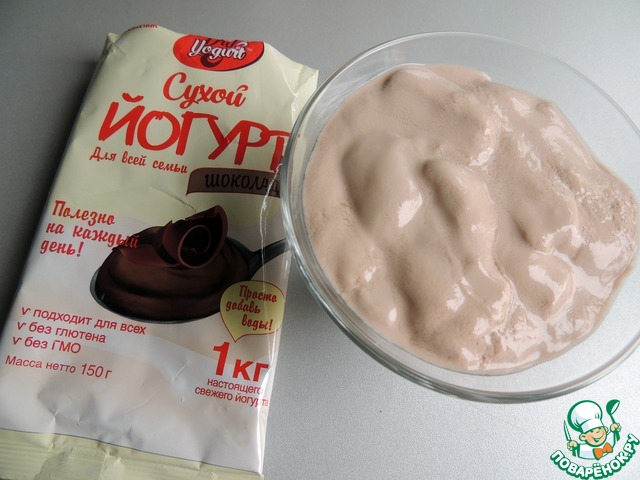 Йогурт для этого рецепты я делала сама, благодаря закваске от Oursson это не составило большого труда. Всё делал согласно инструкции на упаковке. Для приготовления йогурта мне потребовалась только вода и закваска. Воду брала комнатной температуры, разводила в ней закваску и отправляла в духовку на 10 часов при 40*. Затем охладила. Получился вкусный домашний йогурт.