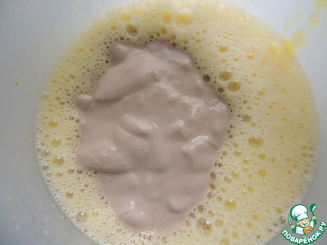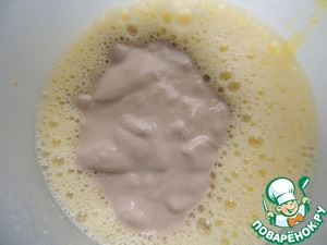 Яйцо слегка взбиваем и добавляем йогурт, перемешиваем.