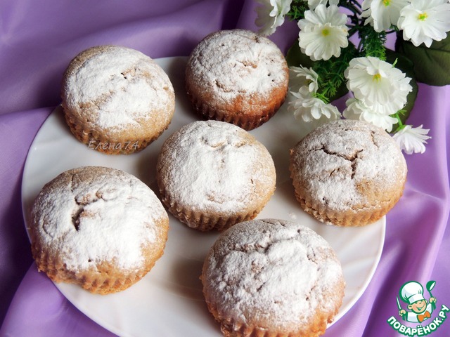 Готовые кексы посыпаем сахарной пудрой и подаём. Приятного чаепития!