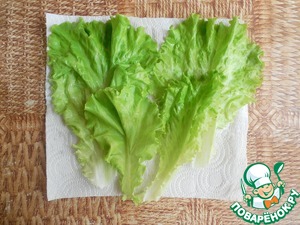• Пока булгур варится, подготовим остальные ингредиенты. Листья салата промыть и хорошо обсушить.