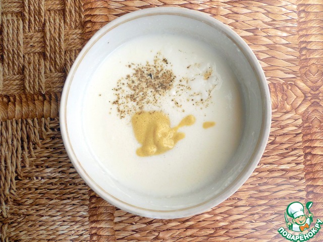 • Для заправки: смешать йогурт с дижонской горчицей. Приправить по вкусу солью и свежемолотым черным перцем.