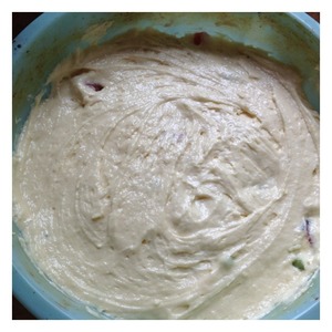 Всыпать разрыхлитель с мукой и взбить еще немного.