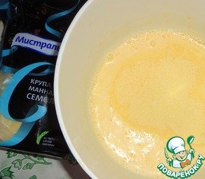 Добавить манную крупу и взбить. Оставить на 15 минут тесто.