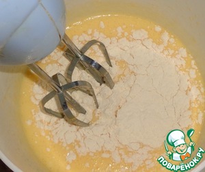 Затем добавить разрыхлитель теста или соду, перемешать.