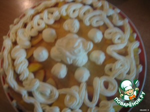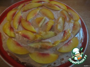3-й верхний корж украшаем дольками нектарина и... зовём детей украшать взбитыми сливками получившийся торт.