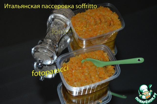 Итальянская пассеровка soffritto - пользуюсь этой пассеровкой очень давно. Облагораживает и насыщает ароматами любое блюдо. Я добавляю практически по все первые, мясные и рыбные блюда. Эта пассеровка - просто находка! Нашла этот рецепт в интернете - огромное спасибо автору. что поделился! Для тех кто не приемлет сельдерей - во время тушения все ароматы и вкусы смешиваются и превращаются в единое целое - наивкуснейшую и ароматнейшую приправу, понять какие именно овощи использованы совершенно не возможно)