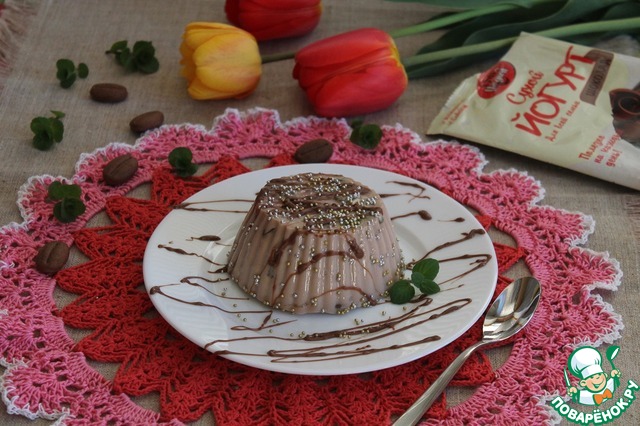 Добавляем шоколадный йогурт и подогретую желатиново-молочную смесь.