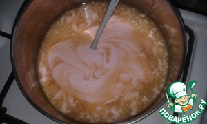 Все размешать и вылить на кекс. Убрать на холод для застывания