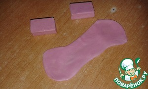 Вылить на застывший клубничный слой и убрать в холодильник. Пока торт застывает приготовим украшение. Жевательные конфеты размять руками. Должен получиться прямоугольник