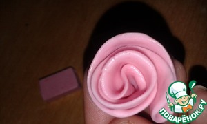 Затем сложить его вдоль пополам и скрутить розочку. Слегка отогнуть лепестки