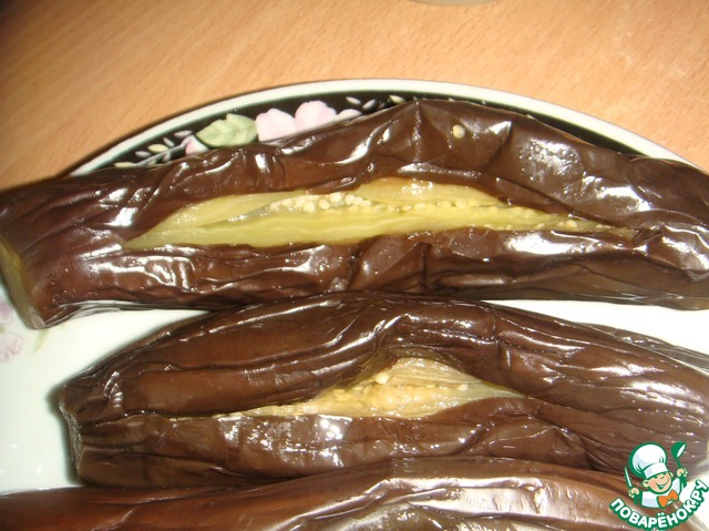 Баклажаны (15-16 см в длину) моем, обрезаем хвостики. Отварить в воде без (!) соли. Я пробую со стороны плодоножки спичкой, если мягкие - вытаскиваю. Ставим под пресс на ночь.