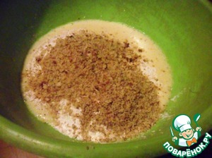 Орехи измельчить в блендере. Ввести в тесто. Перемешать. -
