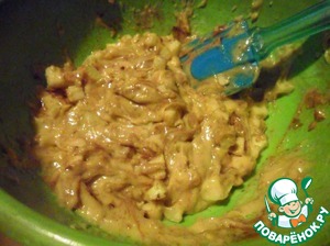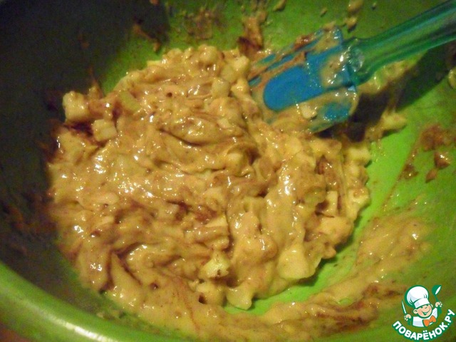 Смешать с мукой, просеянной с разрыхлителем теста и корицей.