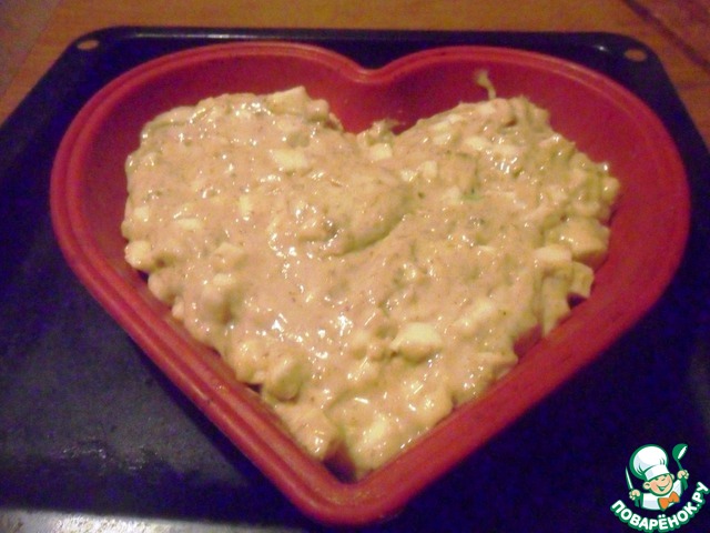 Тесто выложить в силиконовую форму и поставить в разогретую духовку.