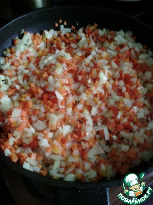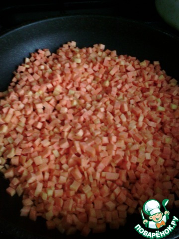 Морковь обжариваем на подсолнечном масле минут 5 (средний огонь).