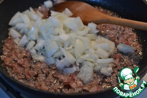 Добавить мелко нарезанный лук и обжарить до стеклянного цвета.