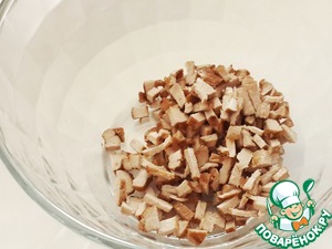 Для начинки нарежьте мелко буженину (или любое другое мясо)