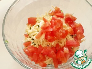 Нарежьте мелкими кубиками помидор. Если помидор очень сочный - то удалите семена