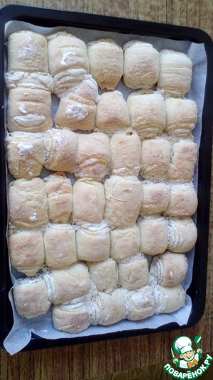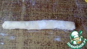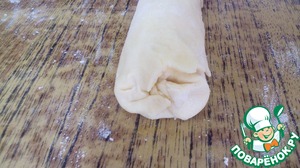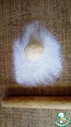 По истечении 30 минут достать шарики (по одному). Положить на хорошо припылённый мукой стол.
