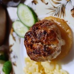 Смешать мясо, натeртое на мелкой тeрке яблоко, овсянку, сахар, соевый соус, мелко порезанный чеснок, яйцо, перец, соль.