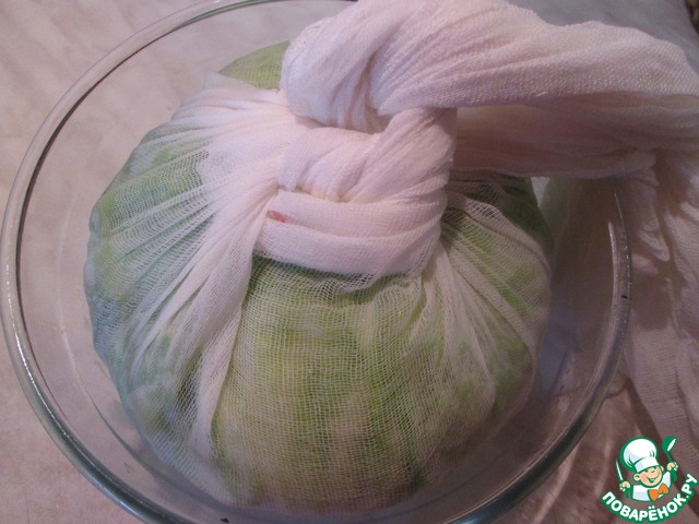 Положить марлю с капустой в глубокую миску.