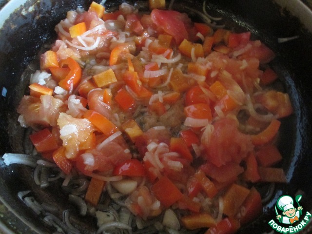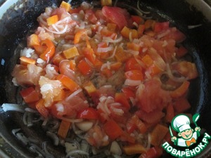 Лук и перец порезать и потушить на медленном огне 10-15 минут. С томата снять кожицу, очистить от семечек, крупно порезать, добавить к луку и перцу. Туда же отправить чеснок, посолить, поперчить, добавить сахар. Жарить, мешая, на большом огне, затем огонь убавить и тушить еще 15 минут. Если на сковороде осталось много жидкости, прибавить огонь и подержать еще две минуты. Грибы поджарить на большом огне на сливочном масле 3-4 минуты. Укроп и петрушку мелко порезать, оливки порезать крупно. Щавель промыть, порезать и поставить тушиться на сливочном масле 20-30 минут на слабом огне.