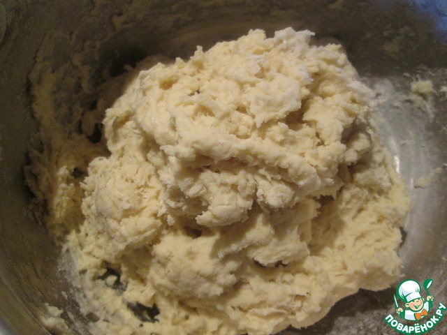 Два стакана муки заварить одним стаканом горячего молока. Немного остудить.
