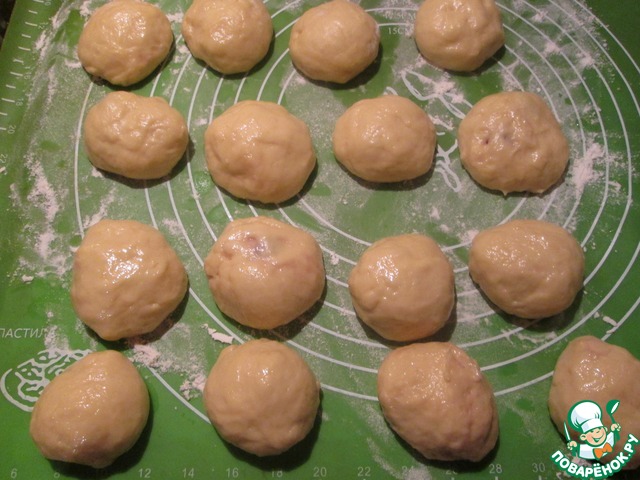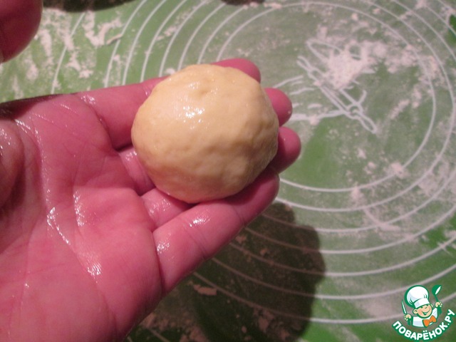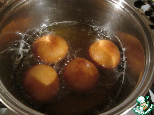 Края пончика залепить и заровнять, сгладить, придав ему форму шара. пончики не стоит делать слишком большими, т. к. они могут не прожариться до конца.