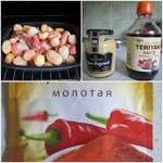 Приготовим маринад. Смешаем терияки с горчицей, паприкой и черным перцем. Добавим масло и соль, если кому-то мало соли, мне было достаточно.