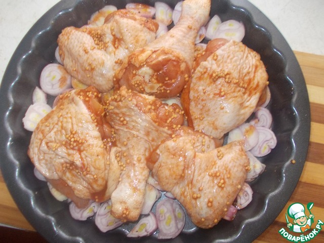Я разрезала курицу на запчасти, грудку убрала в сторону, а вот ножки и крылышки порезала на порционные куски, они нам и понадобятся.