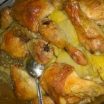 Запекаем в разогретой духовке 180С. полтора часа. Готовность проверяем ножом, если из курицы вытекает прозрачный сок и она мягкая, значит мясо готово. Пару раз можно перевернуть картофель и полить сверху выделившимся соком от запекания.