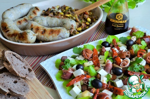 Подать салат можно с горчичными колбасками - гриль на рисово - овощной подушке https://www.povarenok.ru/recipes/show/127240/