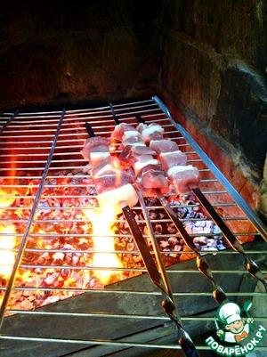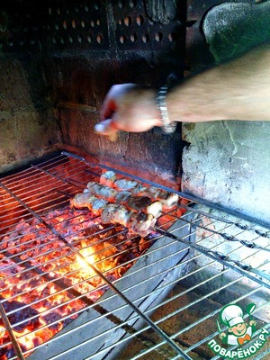 Нанизать куски мяса на шампуры. Я использую большие шампуры от FORESTER.